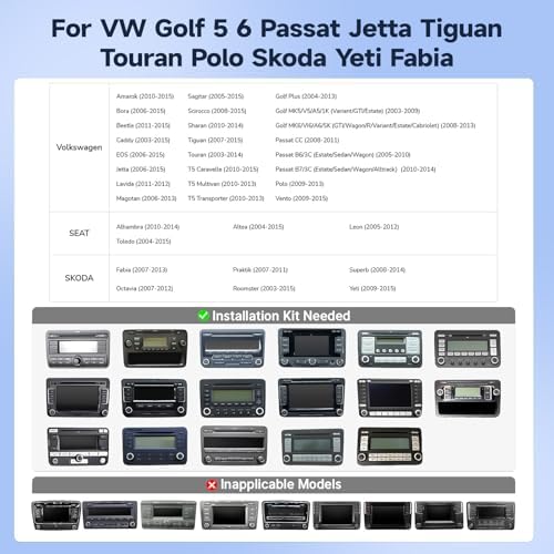 - 🚘【Mirror Link & HD Touchscreen & Split Screen】: For Volkswagen Golf 5 6 radio is equipped with a 2.5D 9'' IPS touch screen that supports mirroring of iOS and Android phones. It allows you to access various functions directly. The split screen function supports same screen display, and both left and right screens can be operated independently. The carplay for VW Passat Jetta radio will bring you a visual feast. ( IOS supports wireless connetion; Android supports wireless/wired connection).