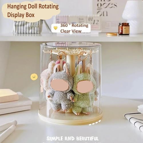Rotating Clear Display Case for Large Pendants, Display Case Compatible with Labubu Pop Mart, Storage Box Show Case with Hooks, Dust and Moisture Proof, All-Round Display, Gifts (Cream Yellow)
