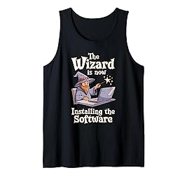 A funny Wizard Installing Software design, makes a perfect funny Humor gift for IT Programmer Geek, Nerd, Computer Engineer Gamer or Coding Coder. Lightweight, Classic fit, Double-needle sleeve and bottom hem