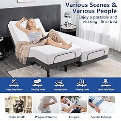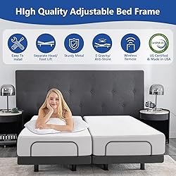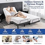 【HIGH-QUALITY ADJUSTABLE BED FRAME】: Adjustable bed base is easy to assemble, with sturdy metal, Adjustable leg height,wireless remote, head/Foot Lift, and 0 Gravity/Anti-Snore Preset. Upgrade your sleep experience and enjoy a luxurious and convenient bed at home. Perfect family gift! 【SEPARATE HEAD/FOOT LIFT】:Head( 0° - 65 °) and Foot(0° - 45°) lift individually to adjust your sleeping position to the ideal angle. Switch 0 gravity/Anti-Snore Preset, you can benefit from clearer airways, decreased congestion, lessened snoring, and better spinal alignment to ease back pain. 【STURDY STEEL/EASY TO INSTALL】:High-strength steel for maximum stability for up to 750 pounds. Wireless remote to control without getting out of bed! It has a detailed instruction manual and is easy to install and use. Enjoy a more comfortable, restful sleep. 【PREMIER MEMORY FOAM MATTRESS】:Adjustable bed frame with mattress in a box, medium firm, strong support, removable cover, fiberglass-free cooling gel/tea foam. Experience the luxury of high-quality CertiPUR-certified foams. Buy a set of mattress+bed frame to enjoy them directly when you go home. 【WARRANTY&BED IN A BOX】: Lifetime warranty! Please don't hesitate to contact us if you have any problems. A compressed mattress in a box that can be easily transported and moved to the bedroom. Unpack and unfold, stretch the mattress, and expand to its original shape within 24- 48 hours.