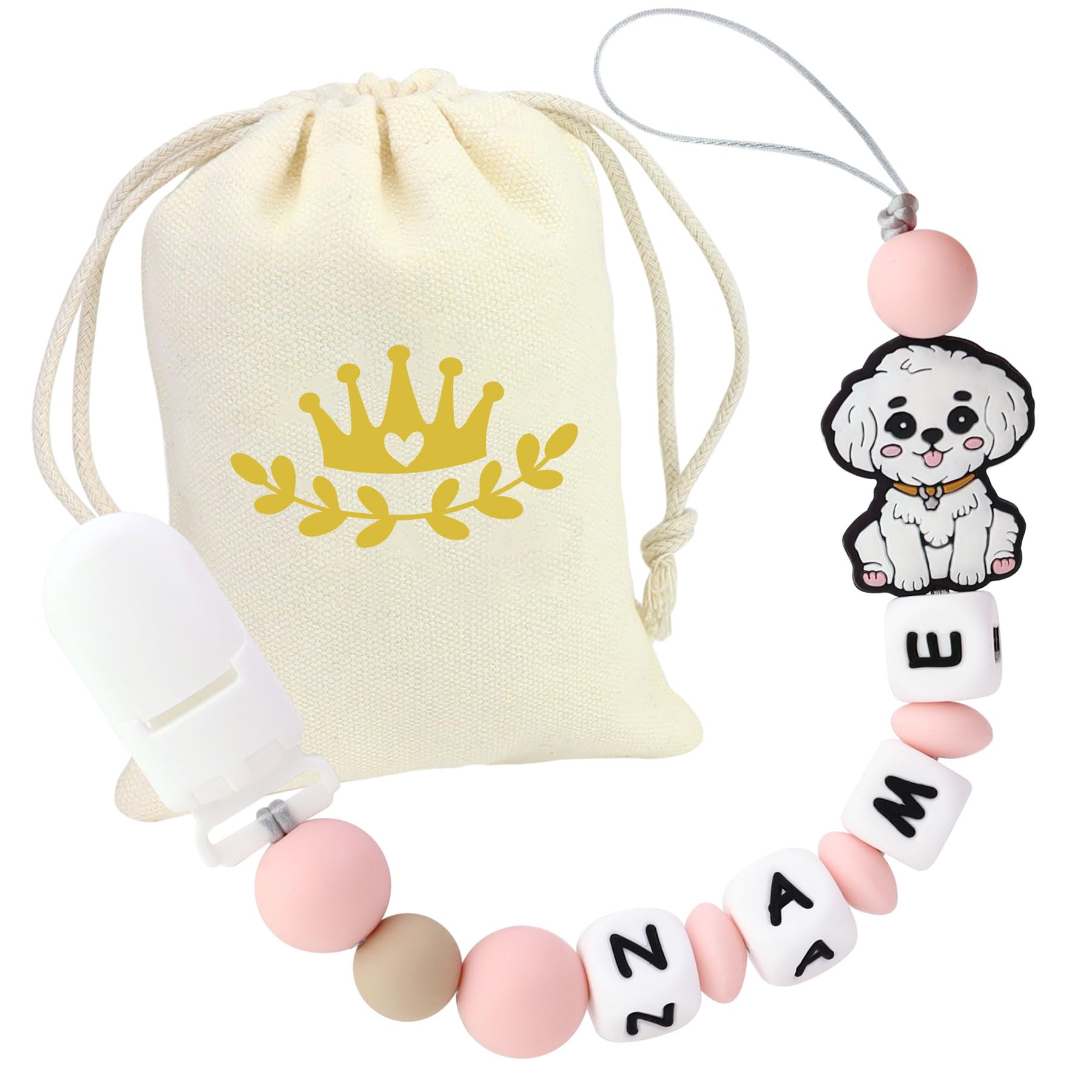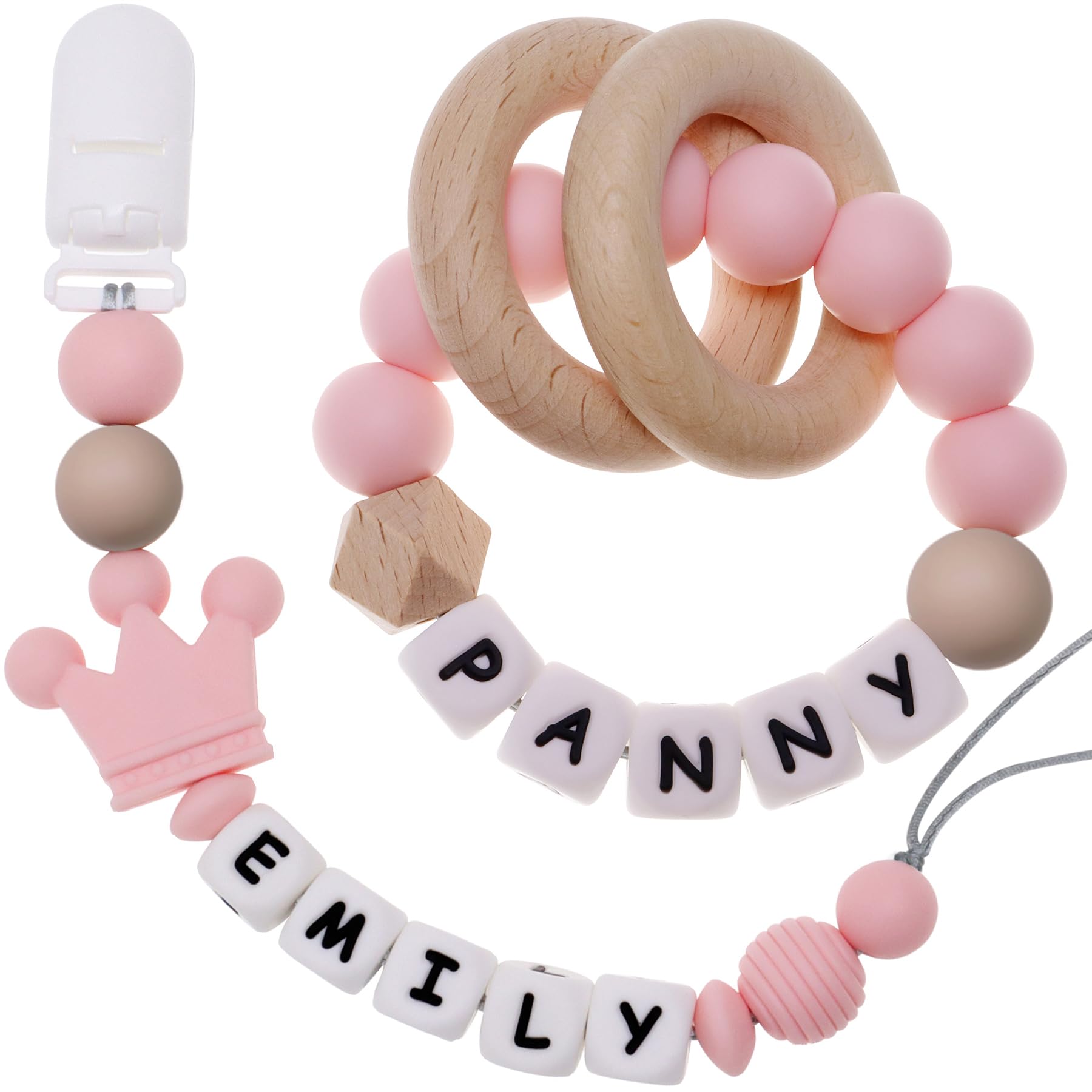 Personalized Pacifier Clip with Name and Customizable Teether Rattle (Colorful)