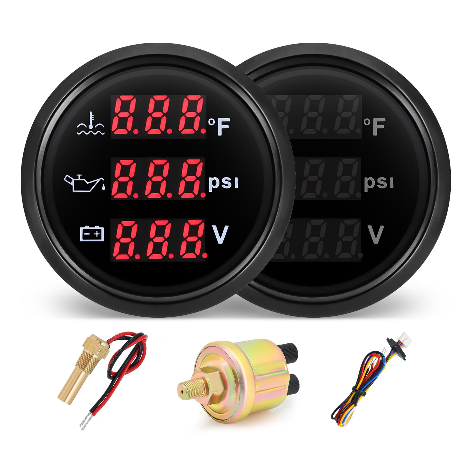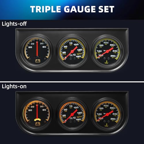 - Sensors Included: Triple Gauge Set comes with sensors. The oil pressure sensor helps you monitor engine health, the AMP meter tracks electrical system performance, and the water temperature sensor keeps you aware of potential overheating issues