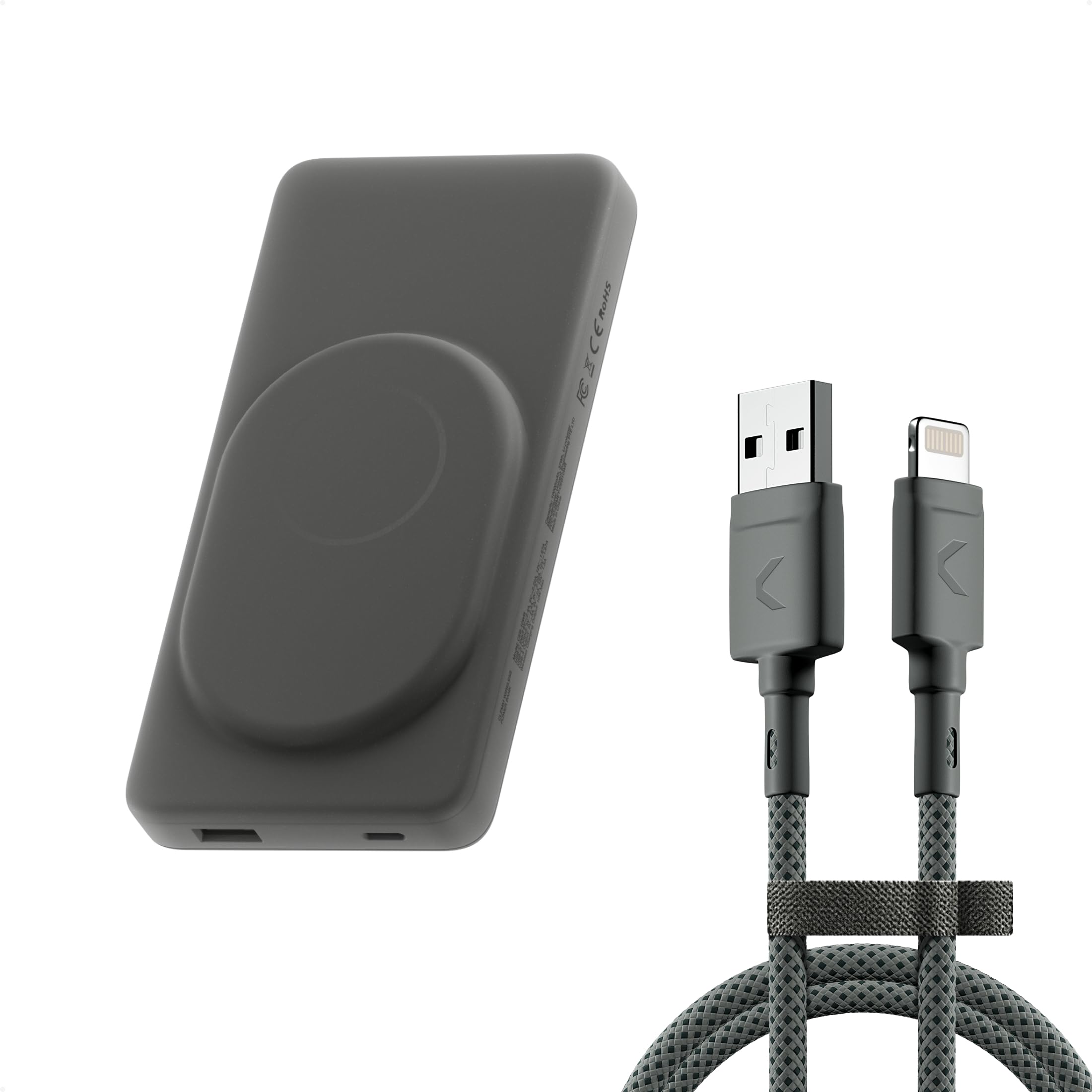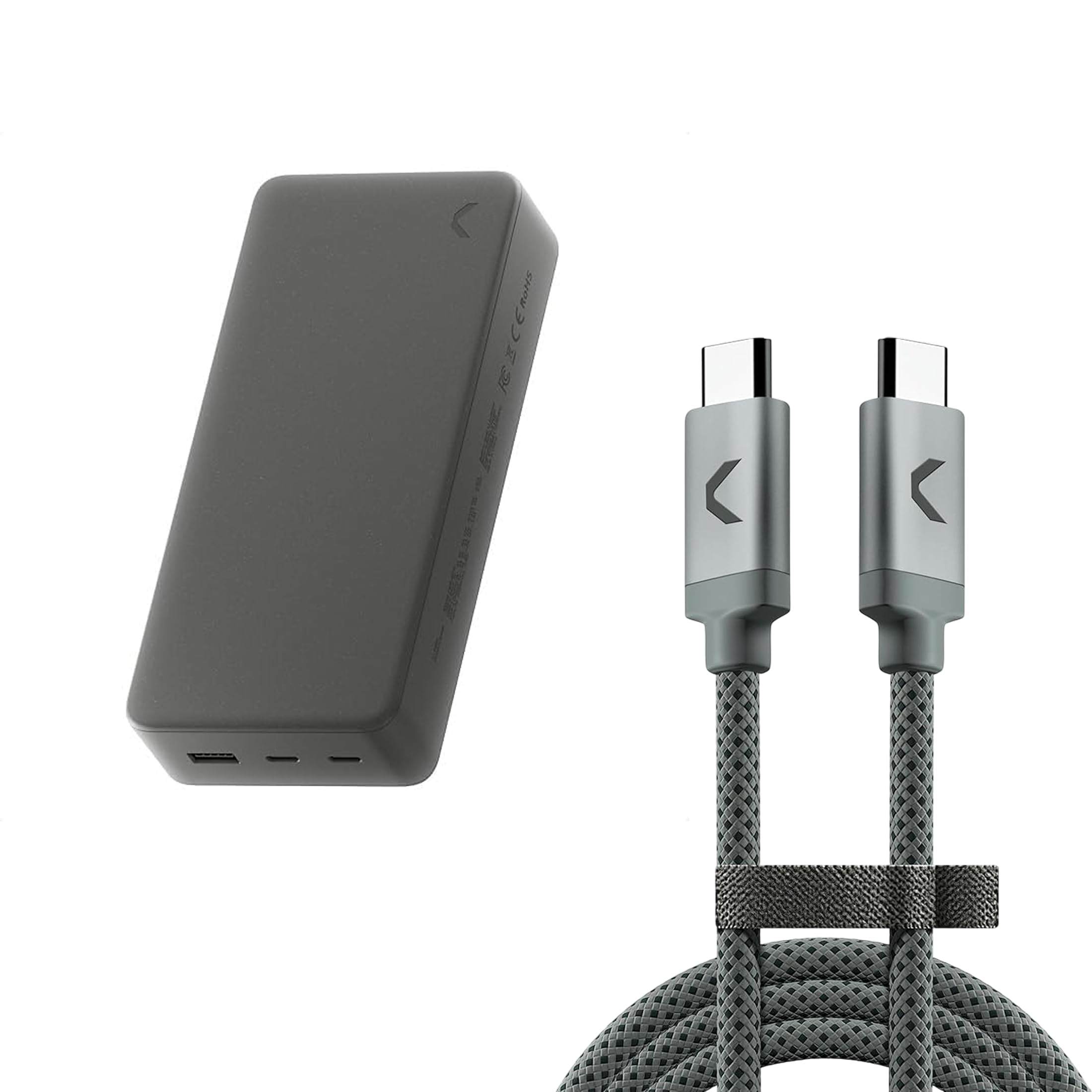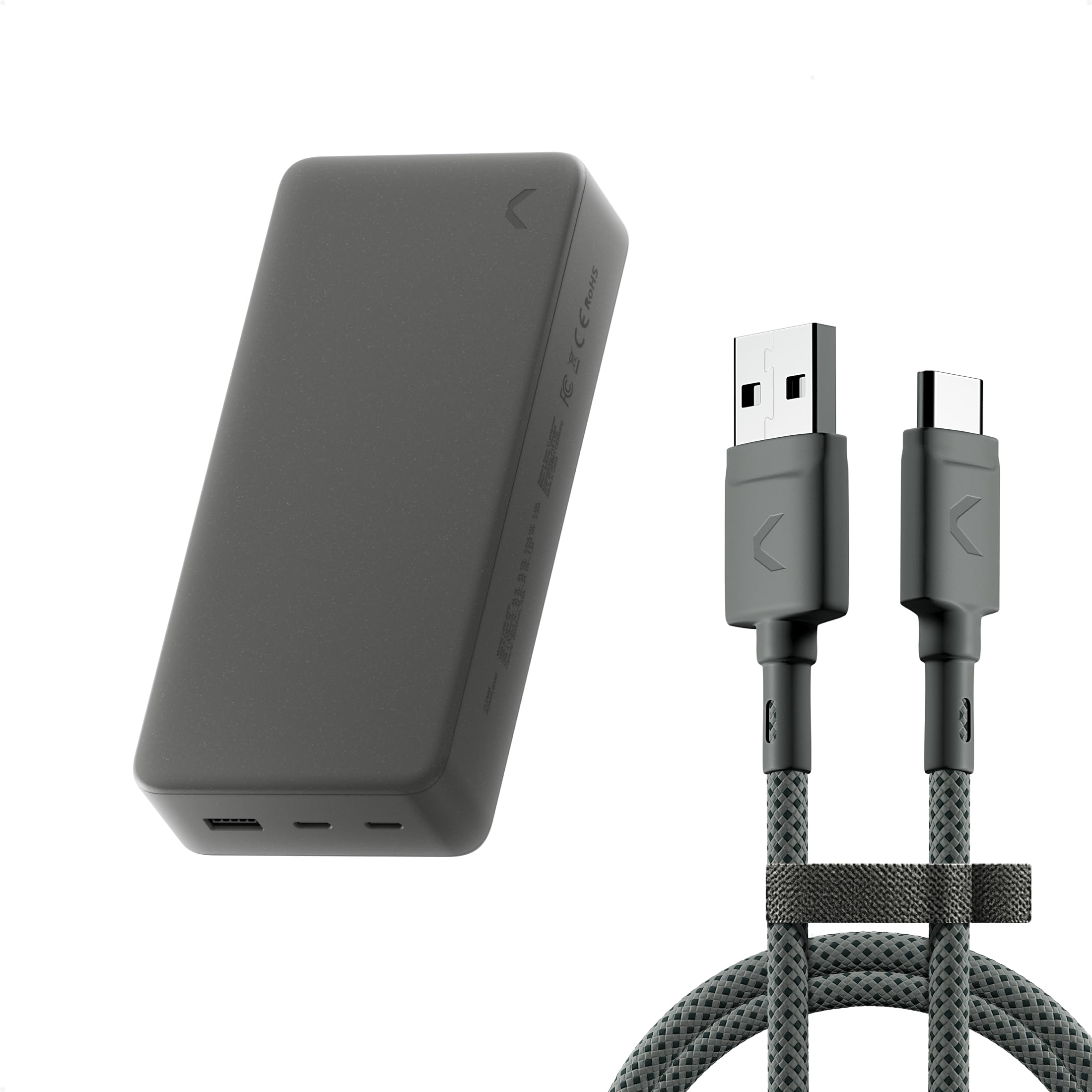 Clemm Portable Charger 10,000mAh Dual Port (USB-A, USB-C), Graphite
