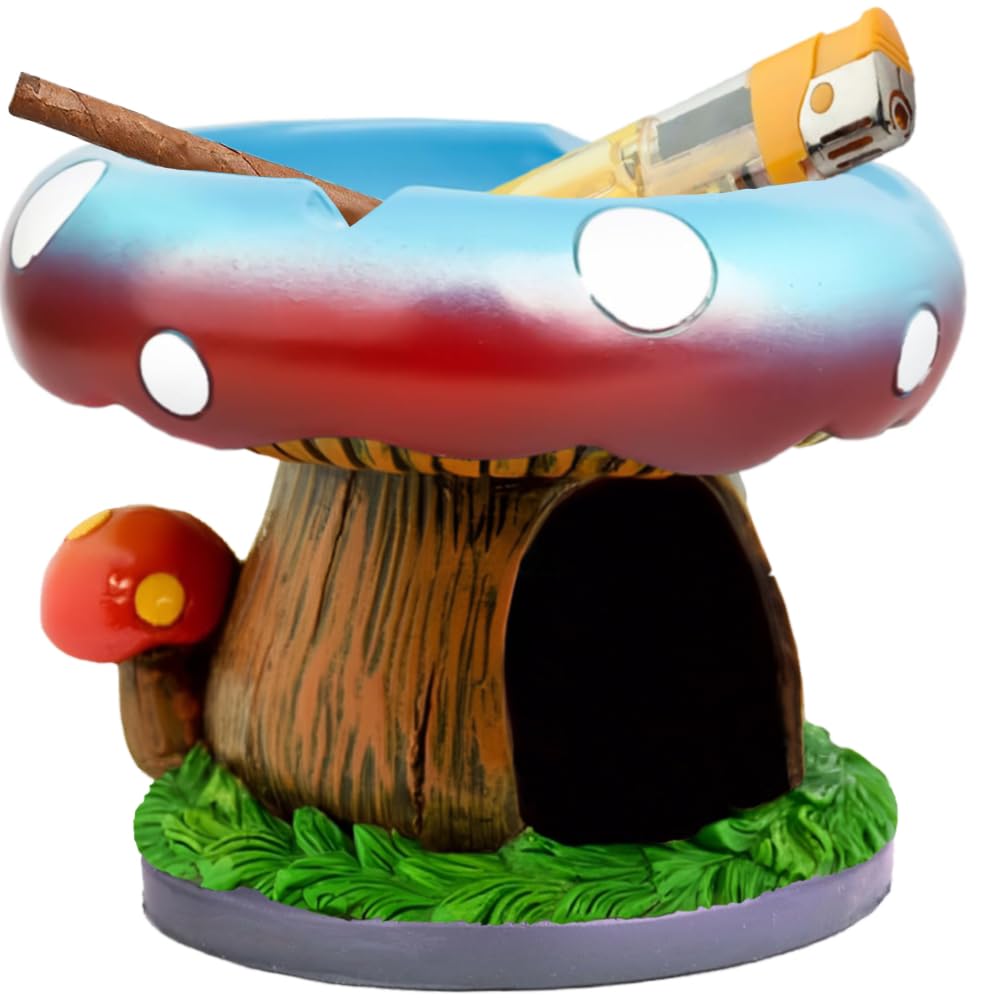 YukaBa Fantastical Mushroom House Ashtrays with Storage - Cool Ashtrays for Weed Smokers and Bong Users with Smoking Accessories Collection