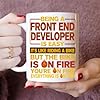 - Made for Front End Developer experts, this mug showed a witty saying that fit their fiery zeal. Forged from quality ceramic, it held 11oz of coffee or tea and handled microwave heat. A solid funny Front End Developer gift, it delighted friends or coworkers who enjoyed a chuckle with their brew.