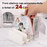 Rainmae 2 Pcs CD Holder, DVD/CD Display Rack & CD Storage Box Record Storage Stand Holds up to 12 Standard CD Cases, CD Storage Case Holder for Theater Room Shelf Rack, White