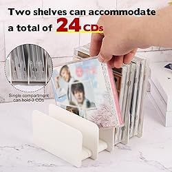 - Rainmae 2 Pcs CD Holder, DVD/CD Display Rack & CD Storage Box Record Storage Stand Holds up to 12 Standard CD Cases, CD Storage Case Holder for Theater Room Desk Shelf Rack, White Features: Easy Maintenance: The smooth surface of the practical record racks is easy to clean, just wipe them gently with a damp cloth. Compact in size, they can also be easily stored in drawers, cabinets, or storage boxes when not in use. Keep Desktop Tidy: Say goodbye to cluttered desks or media tables. Organize and store your CD collection neatly. The elevated base provides stability and a more attractive appearance when in use. Home Decor Rack: With a simple white design, it complements any home decor style. You can place the cd storage shelf in various spaces, on desks, countertops, and use it to decorate bathroom, vanity table, study, and more. There are many creative ways to use it waiting for you to discover. Specification: Material: PP Color: White Size: 6.1x4.9x2.7 Inch Package includes: 2 plastic CD holder racks Notes: Manual measurement, please allow slight errors on size. The color may exist a slight difference due to different screen displays.