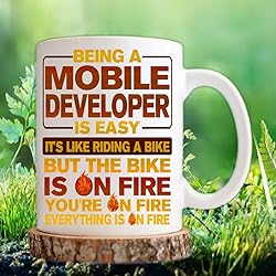 - Wanted a fun Mobile Developer gift? This 11oz ceramic mug stole attention with a bold, funny design made for Mobile Developers. Etched with the line Being A Mobile Developer Is Easy. It Was Like Riding A Bike. But the Bike Was On Fire. You Were On Fire. Everything Was On Fire, this mug caught the wild, driven vibe of Mobile Developer life. Forged from sturdy ceramic, it offered toughness and heat resistance—a trusty pick for daily coffee or tea runs.Mobile Developers who enjoyed a laugh picked this mug as a gem for their collection. Its 11oz size left room for favored drinks, and the solid handle eased grip. Crafted with a tough print, the fiery quote stayed sharp through dishwasher cycles, perfect for busy Mobile Developers on the move.More than just a mug, this item doubled as a prime Mobile Developer present. Friends, family, or coworkers after a funny nod to a Mobile Developer’s grind found a hit with this one. The Bike On Fire bit tied to the fast-paced world of Mobile Developer tasks, clicking with those who lived the role. Whether set on a desk or used at home, it added wit and style to any spot.Tough enough for microwave use, this ceramic coffee mug fused utility with a playful twist. Its pull hooked Mobile Developer fans who loved items that echoed their sharp humor. For Mobile Developer pros, this mug kicked off talks and tipped a hat to the wild, rewarding road of their work. Great for birthdays, holidays, or a quick shoutout, this funny Mobile Developer mug blended humor and quality into one slick find.