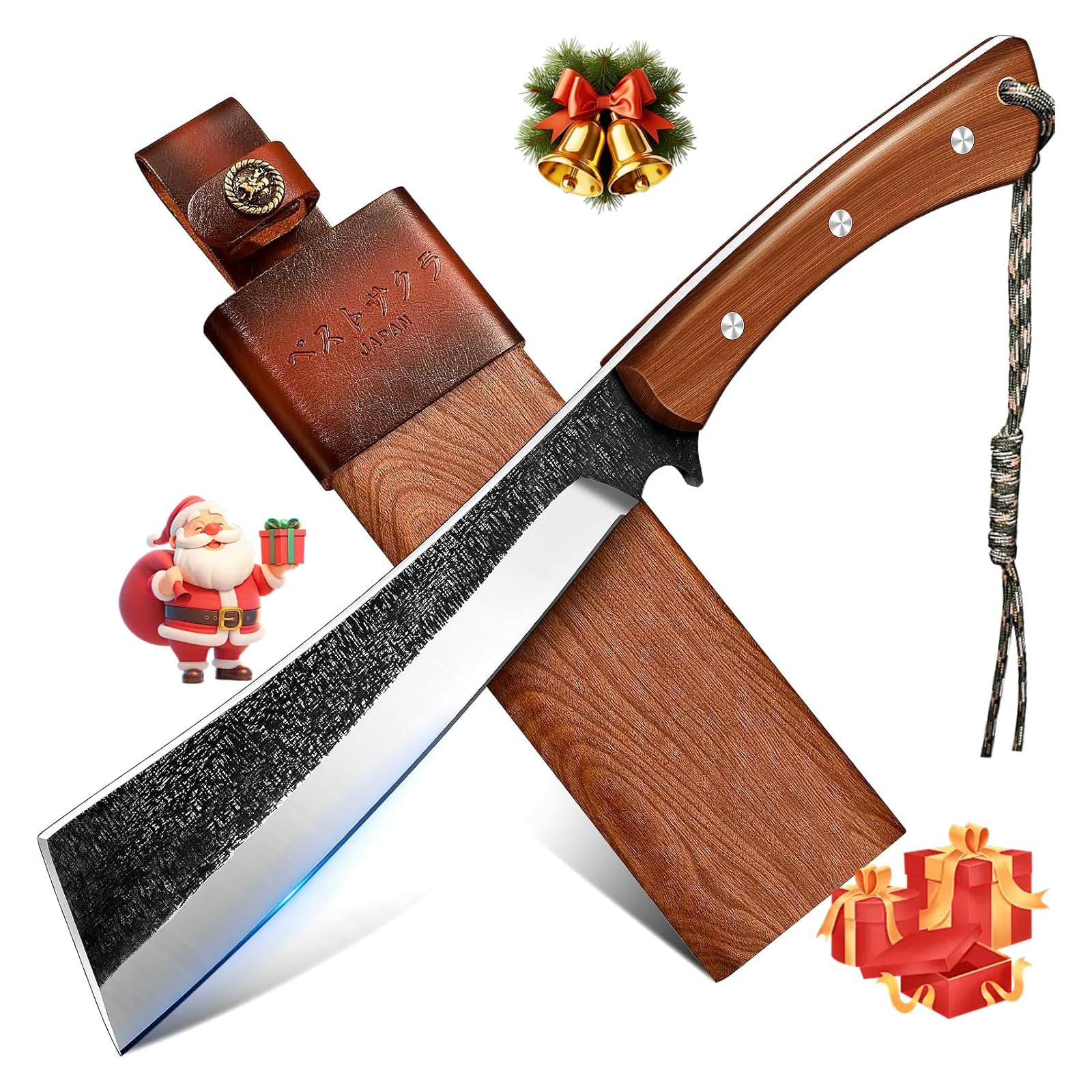 - Well-Balance Full-Tang Machete & Comfortable Wood Handle: The machete for cutting trees heavy duty come with full-tang construction, ensuring that the blade will not suddenly separate from the handle, providing well-balanced, performance-driven,surperior strength, high stability and durabilty; Comfortable wood handle of machete with physics design gets short force distance and make it more effort saving for using in bushcrafting; Nice heavy duty machete for yard work