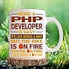 11oz Php Developer Mug - Funny Php Developer Gift, Humor Ceramic Coffee Mug Being A Php Developer Is Easy, Like Riding A Bike On Fire - Unique 11oz Cup for Php Developer Pros