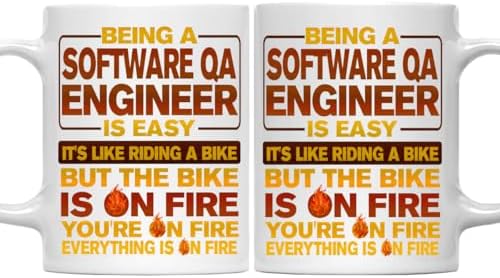 - Crafted for Software Qa Engineer lovers, this 11oz ceramic mug bore a funny quote: Being A Software Qa Engineer Is Easy, Like Riding A Bike On Fire. A top Software Qa Engineer gift, it livened up coffee breaks for pros. Built durable and dishwasher-safe, this cup took on daily use by Software Qa Engineers who craved humor in their routine.