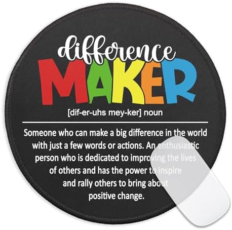 Difference Maker Mouse Pad for Desk, Difference Maker Definition, Round Mousepad with Non-Slip Rubber Base, Thank You Gifts for Teacher Leader Boss, Inspirational Gifts for Employee Coworker