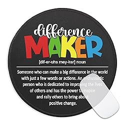 Difference Maker Mouse Pad: "Difference Maker Definition", our mouse pad is printed with funny saying and colorful patterns. The cute and interesting mouse pad will add personality to your office desk and bring more positive emotions to you while working, studying or gaming Material and Size: The mouse pad is made of high-quality materials, with the size of 8.66 x 8.66 x 0.12 inches/22 x 22 x 0.3 cm, lightweight and easy to carry, soft and foldable, perfect for office, home, gaming and business travel Super Smooth Surface: The super-smooth surface of the mouse pad allows you to move the mouse quickly and accurately track cursor positioning, providing you with a comfortable experience. Suitable for all kinds of computer, laptop and wireless mouse Durable and Non-slip: The 3mm thick non-slip natural rubber base and dense anti-slip texture allow the mouse to operate stably, eliminating unnecessary movement of the mouse pad during use. The mouse pad is designed with edge stitching, which can prevent deformation and damage to ensure long-term use Perfect Gift Idea: Our funny mouse pad is a great desk accessory for family, friends, coworkers, bosses, teachers, nurses, neighbors. It's also an excellent holiday gift for occasions such as Birthday, Graduation Season, Teacher Appreciation Week, Nurses Week, Christmas, Thanksgiving, Mother's Day and Father's Day