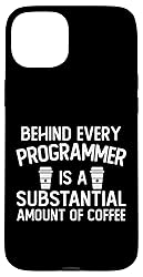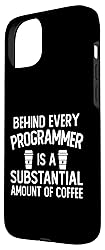 funny programmer design for coffee lover, dad, and programmer in christmas, programmers day, fathers day or birthday. funny programmer design saying and quote Behind Every programmer is A Substantial Amount Of Coffee Two-part protective case made from a premium scratch-resistant polycarbonate shell and shock absorbent TPU liner protects against drops Printed in the USA Easy installation