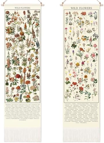 Ovveroche 2 Pcs Vintage Poster Hanging Floral Vertical Tapestry Long Vertical Botanical Wall Art Prints Rustic Retro Bedroom Office Home Decoration