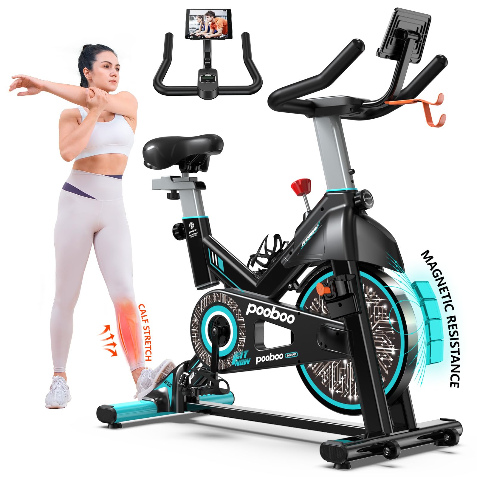 pooboo Exercise Bike, Stationary Bike for Home Gym, Air Resistance Bluetooth Fan Bike w/Dual Acction Handlebars & Dual-Layer Transmission System, Upright AirBike Indoor Cycling Bike for Cardio Workout