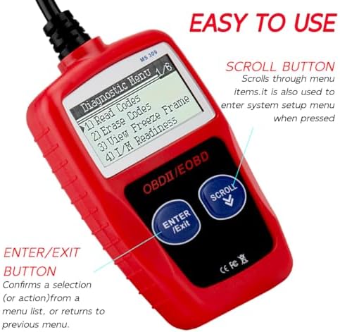 MS309 OBD2 Scanner Diagnostic Tool, Check Engine Code Reader with Reset OBDII/EOBD Car Diagnostic Scan Tools for Car & Truck After 1996