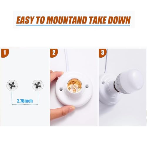 - Our 15 FT or 25ft plug in light socket has an ON/OFF switch 3.28FT from the plug for easy control. This bulb socket is compatible with standard E26/E27 bulbs; a 2-Prong US AC Plug. Non-dimmable, Max Power: 60W, Working Voltage: 0V-230V