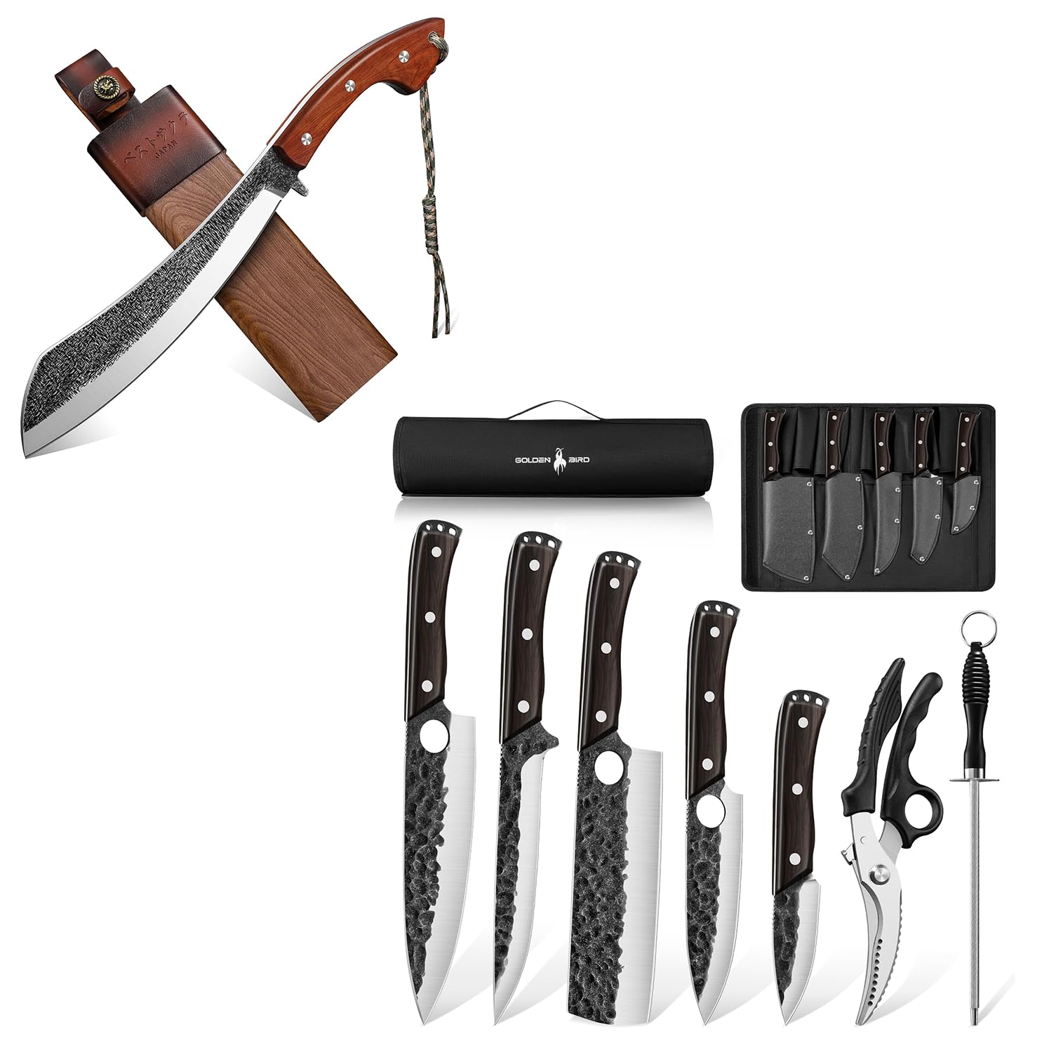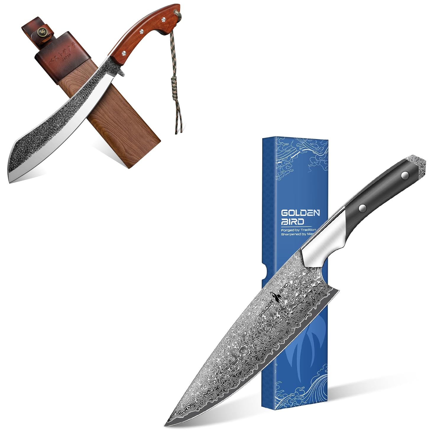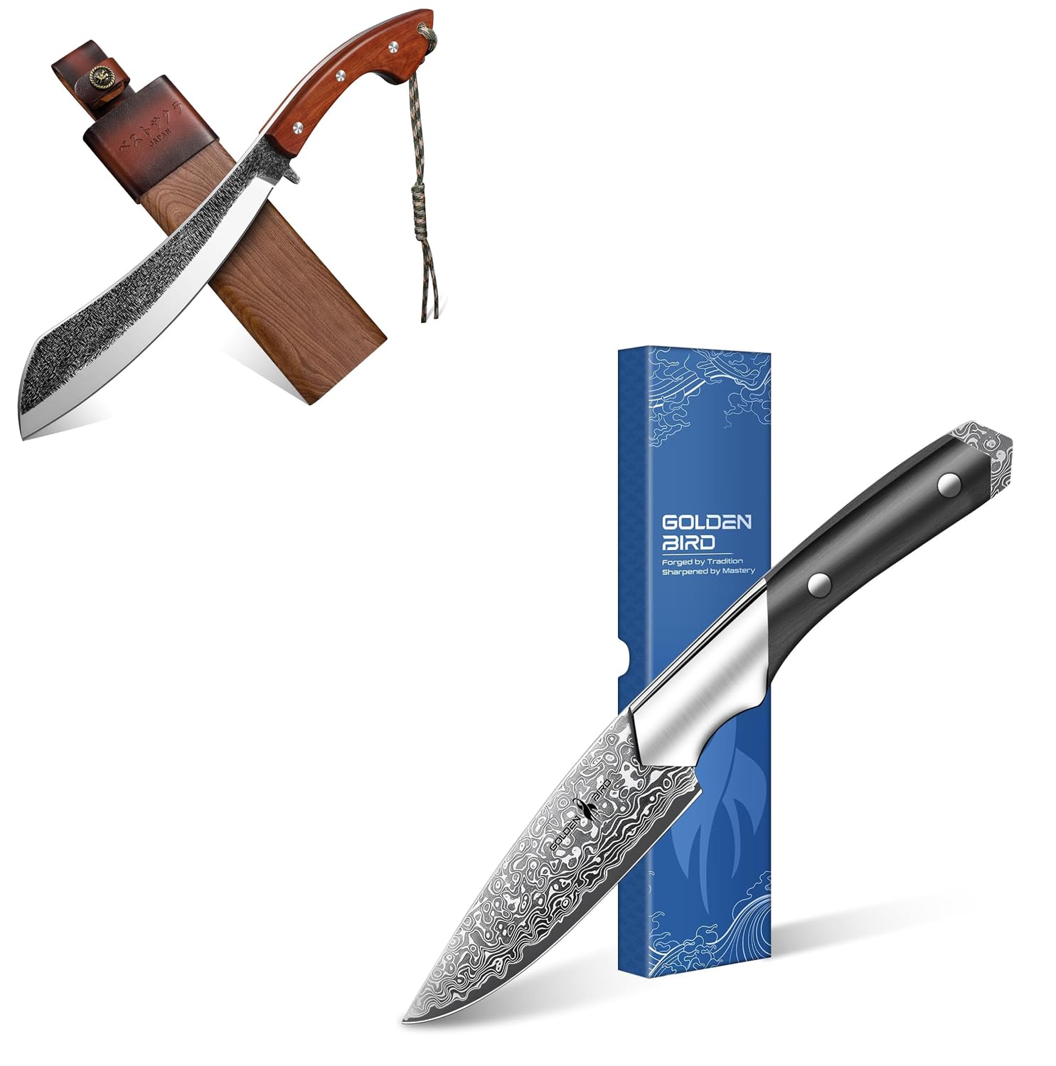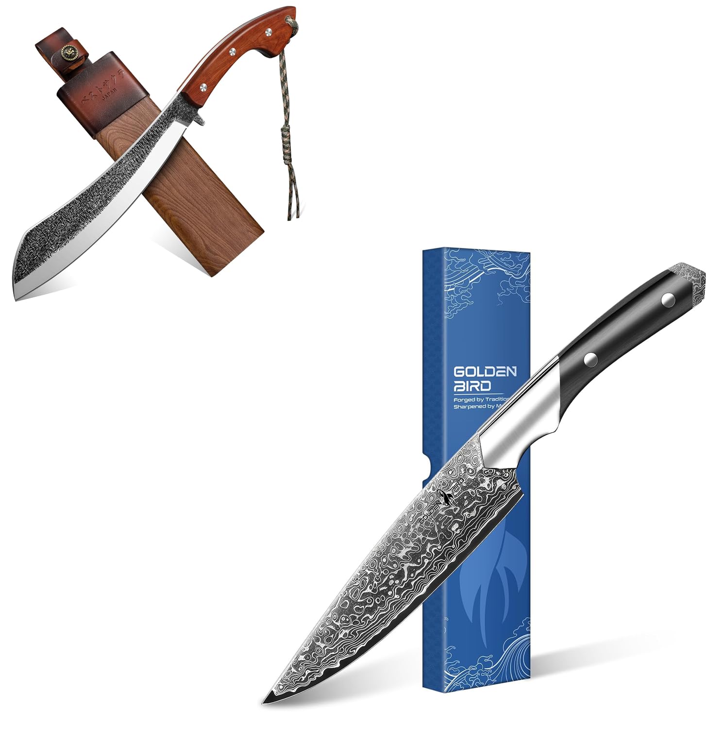 Golden Bird Parang Machete Knife - 9.5 Inch Heavy Duty Machete for Cutting Trees,Bushcraft,Survival,Outdoor Hunting and Camping - Full Tang with Wooden Sheath - Yard Work Tool, for Men