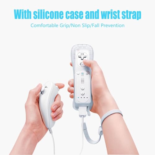 Degulan Remote Controller for Motion Plus Wii and Nunchuck, Wireless Controllers Compatible with Wii/Wii U with Silicone Case and Wrist Strap (White)