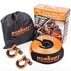 Strong spring loading, hanging storage system is designed to firmly grip and support large equipment. Strong grip will tighten the shovel, axe, broom, scorpion, mop, and brush without slipping. The traction rope provides 32,000 LBS of breaking strength belts, with a total length of 30 feet and a width of 3 inches, 3/4 D Ring Shackles (2pcs) ; An essential tool for off-roaders, emergency personnel, farmers or anyone needing to haul heavy objects. Our traction belt is an ideal tool for hauling trucks, off-road vehicles, hauling heavy equipment, or moving large debris; HORUSDY straps will make your off-road travel easy and enjoyable, and you can pull out stuck cars through the traction belt. In an emergency, you can use the traction belt to easily remove fallen trees, stumps, shrubs, and debris, saving you the expenses paid to professionals and waiting for rescue time.