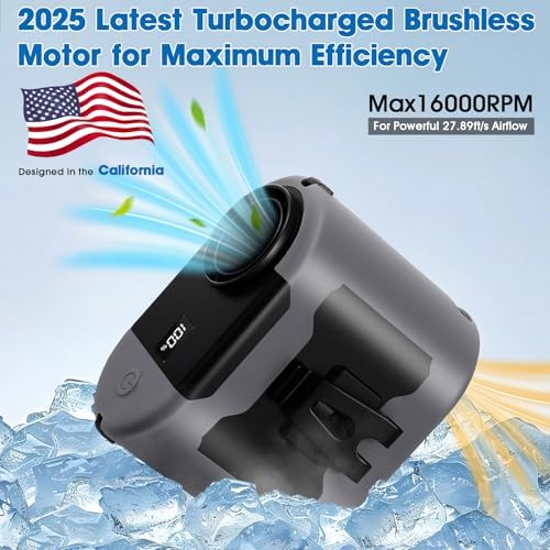 - 【2025 Upgraded Design 】Breakthrough front to back airflow channeling structure. Compared to traditional waist fans, our straight through ventilation system increases airflow efficiency by 83%, eliminating heat dissipation issues caused by clothing obstruction at air intakes. Equipped with a turbocharged motor achieving an industry-leading 16,000 RPM (vs. average 12,000 RPM) and 5 optimized blades, it delivers 27.89 ft/s airflow the fastest cooling experience for outdoor workers and travelers.