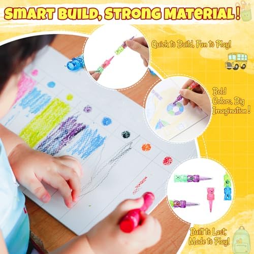 12 Pcs Stackable Crayons Plastic Bear Stacking Buildable Coloring Sticks 5 in1 Replaceable Tip Crayons for Office Supplies Goodie Bag Filler, 5 Colors