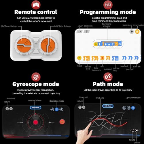 - APP and Remote Control:With both remote control and app control functions, this robot toy kit allows kids to easily control their robot's movements. By programming their robot's actions, kids can learn basic programming skills.