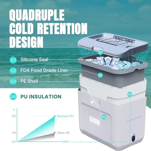 - 【4-Layer Insulation for Long-Lasting Cold】Niphean paddle board cooler box features a 4-layer insulation design, which can effectively keep the internal temperature low for an extended period, ensuring that your food and drinks stay cold and fresh whether you are on a long camping trip or at the beach all day.