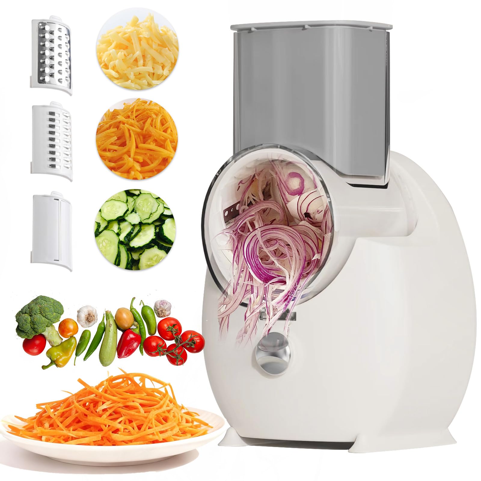 - Efficient and Effortless: Equipped with a 250W high-performance motor, this kitchen electric grater easily handles cheese, fruits, vegetables, and more. With the electric grater, you can prepare ingredients quickly, saving time and effort so you can enjoy your meals sooner.