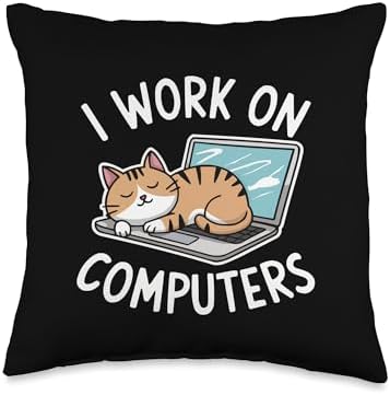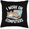 I Work On Computers Funny Coder Programmer Cat Lover Throw Pillow