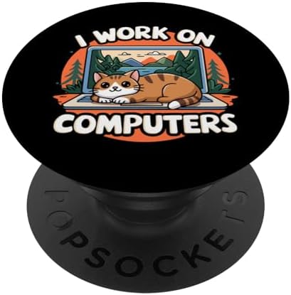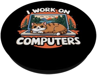 Funny Coder Programmer I Work On Computers Cat Lover PopSockets Adhesive PopGrip