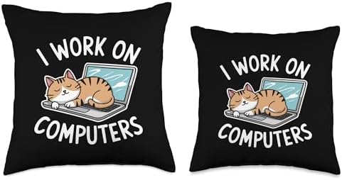 I Work On Computers Funny Coder Programmer Cat Lover Throw Pillow
