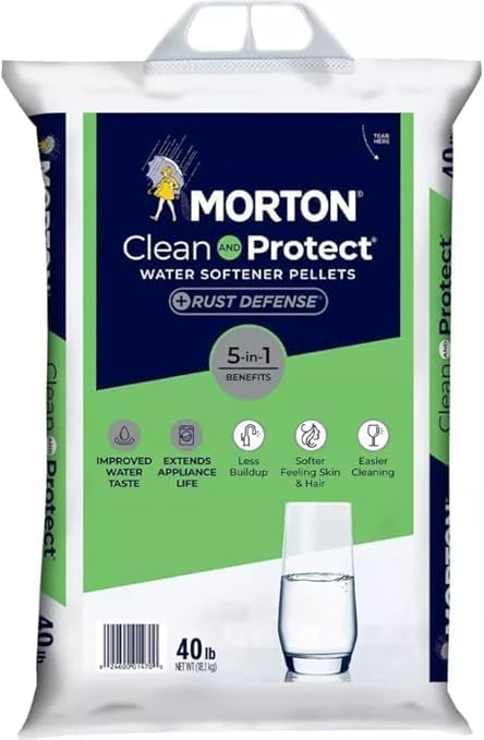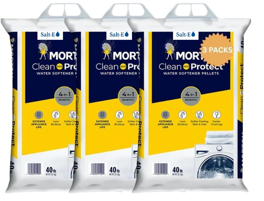 Transform your home's water quality with Morton Clean and Protect Water Softener Pellets, now available in a convenient 6-pack of 40-pound bags. These high-performance pellets offer 4-in-1 benefits to enhance your water treatment system's effectiveness. They help extend appliance life, prevent hard water buildup, improve soap and water interaction, and maintain cleaner surfaces throughout your home. The pellets dissolve consistently to keep your water softener running at peak performance, helping to reduce scale buildup in pipes and appliances. Each 40-pound bag is designed for optimal compatibility with most residential water softening systems. This bulk package ensures you'll have a reliable supply of softener salt on hand, reducing the frequency of replacements and maintaining consistently soft water throughout your home.