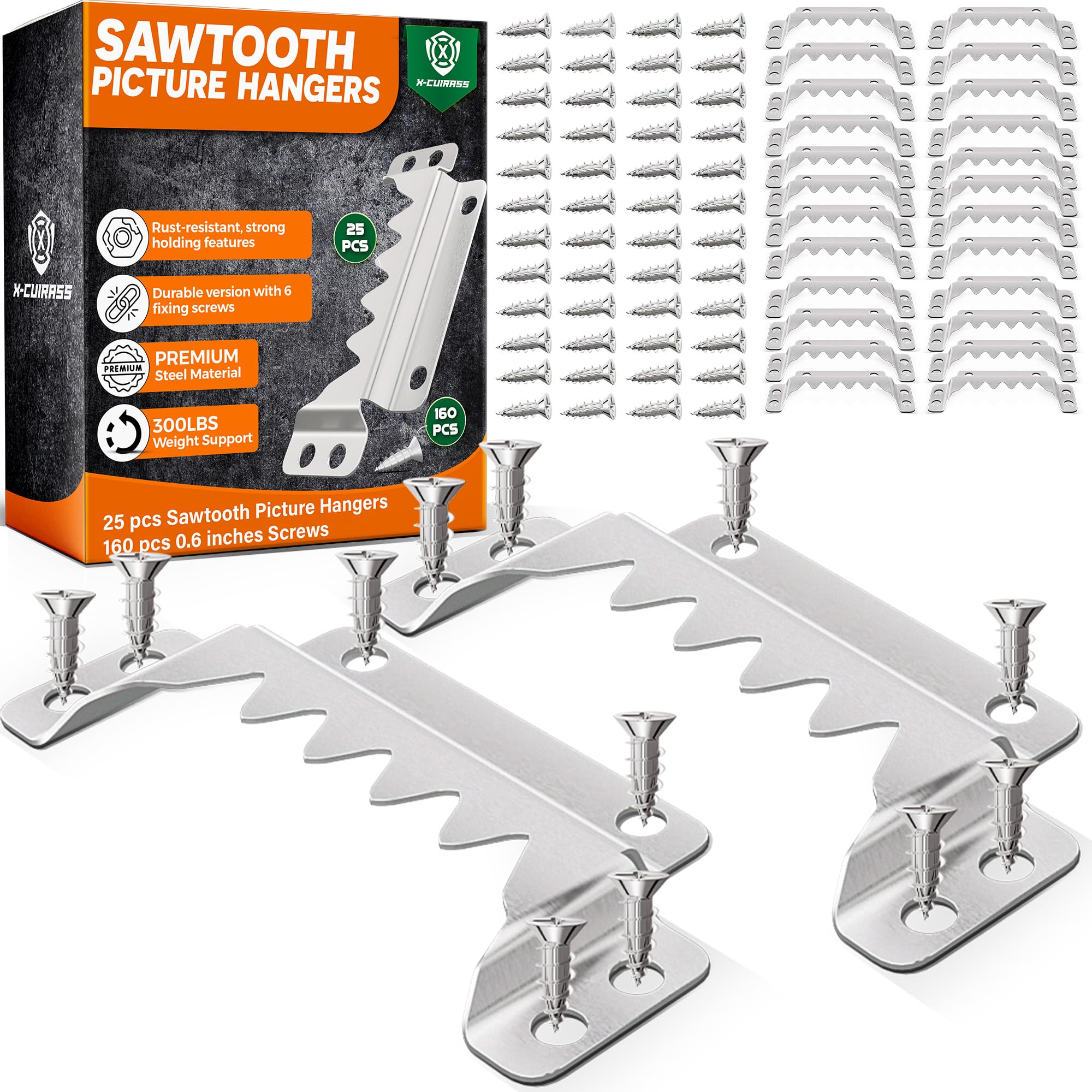 - [Warranty & Package] We are confident that our products are tested through many strict processes before packaging, guaranteeing the product delivered to customers is always in the best state. If there are any defects or issues, please contact us for a refund within 30 days. Package included: 25 pcs Sawtooth Picture Hangers, 160 pcs 0.6 inch Screws.