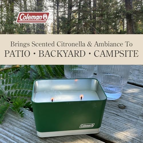 Coleman Citronella Candle 11oz – Outdoor Candle in Retro Cooler Tin – Long-Lasting Decorative Candle for Patio, Camping, Backyard, BBQ & Travel, Green