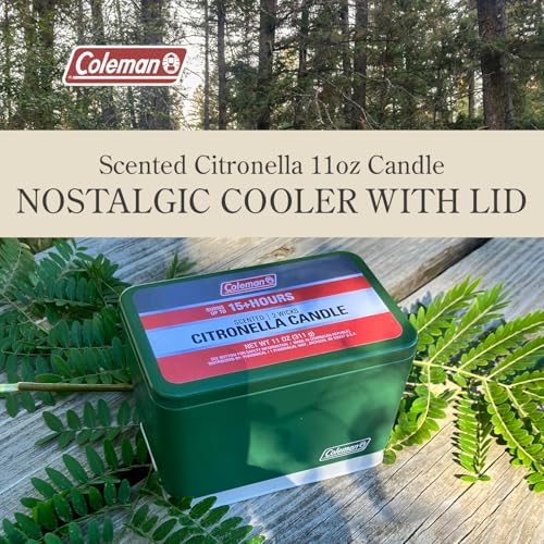 - Retro Cooler Design with Lid; This Coleman Citronella Candle comes in a vintage-inspired cooler design with a matching lid, adding a nostalgic and functional touch to your patio, backyard, or camping setup