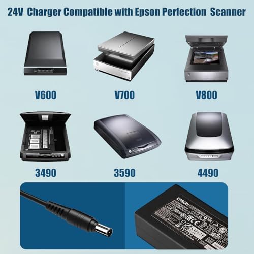 24V AC Adapter Fit for Epson Perfection Photo Scanner V500 V600 V700 V750 V800 V850 3490 3590 4180 4490 Workforce ES-400 ES-500W DS-530 DS-410 DS-510 GT-S50 GT-1500 Power Supply