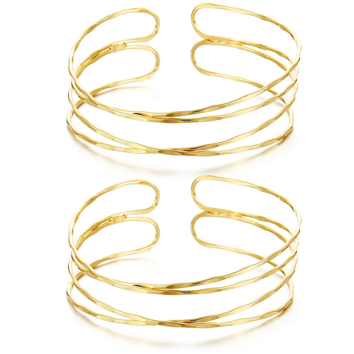 BOMAIL 2Pcs Gold Arm Cuff Bracelets for Women Open Adjustable Upper Arm Bangle Adjustable Coil Swirl Armlet Armband Set Minimalist Upper Arm Cuff Jewelry