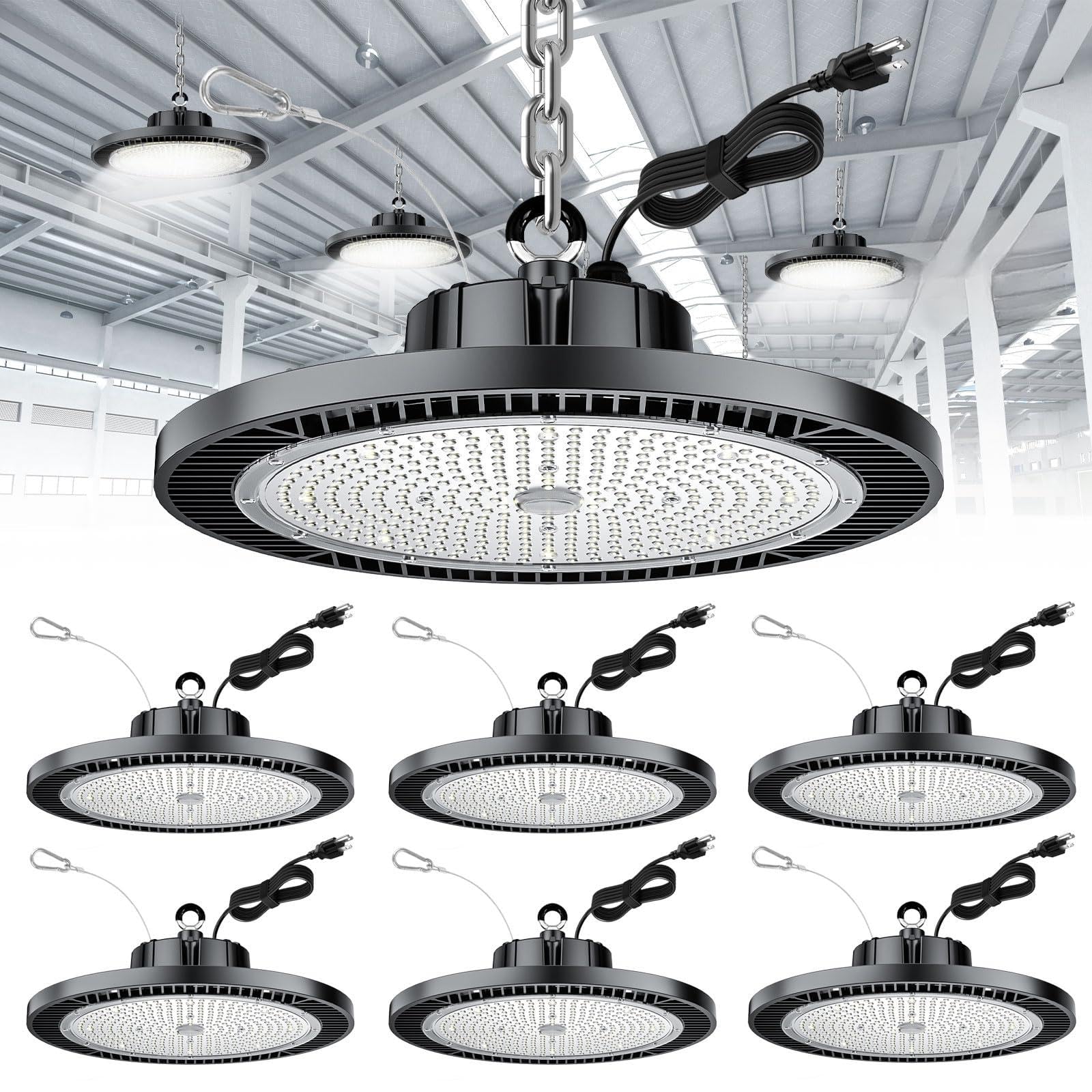 THELUX 200W UFO LED High Bay Light 30000LM IP65 5000K Daylight Super Bright Commercial High Bay LED Shop Lights for Warehouse Garage Factory Workshop Barn Gym with US Plug Cable & Safe Rope 10Pack
