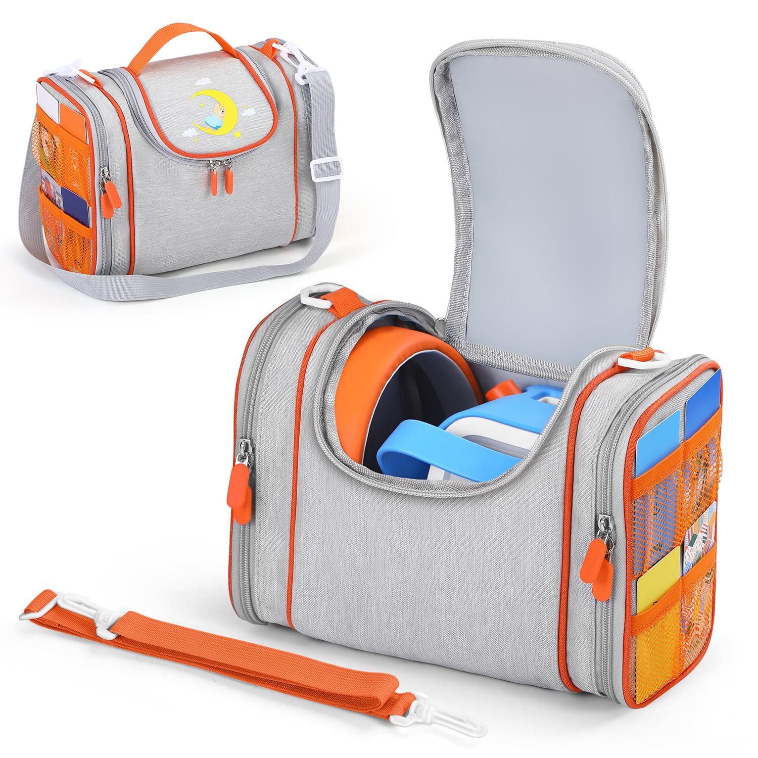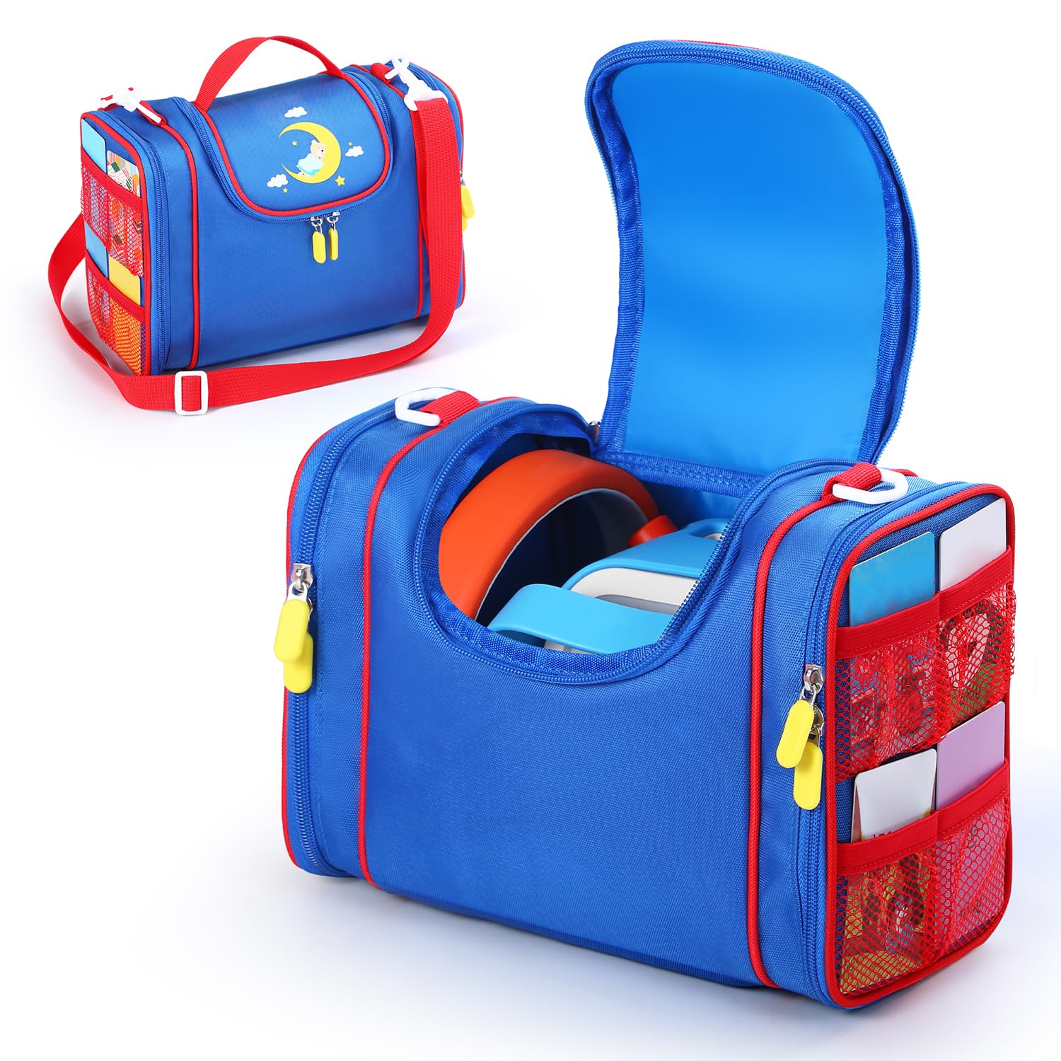 - 【Convenient and practical】The pockets on both sides of the can be fully opened, allowing children to display their favorite story characters and easily access their story dream machine books whenever they want.