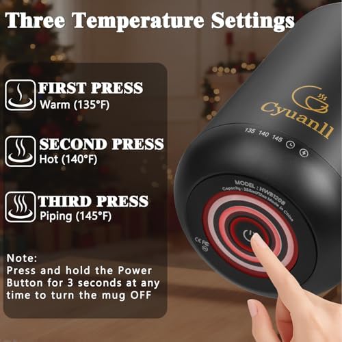 - Heated Coffee Cup:You can adjust 3 temperatures directly from the touch button on the Cyuanll smart coffee cup, choose warm water (135°F), hot water (140°F) or piping hot (145°F) to enjoy hours of warm time. The included sliding lid keeps your drink hotter longer and prevents spills.