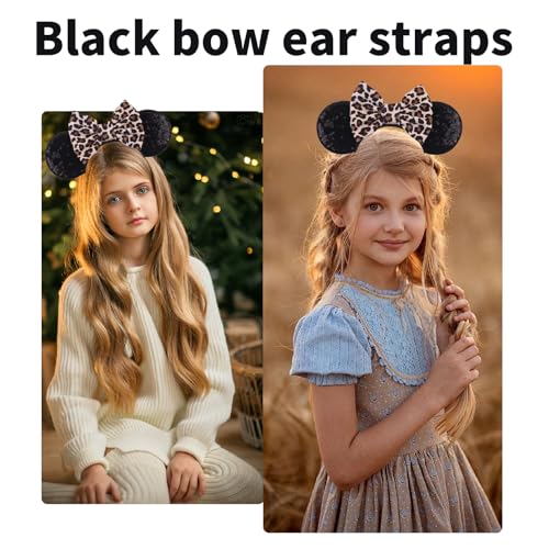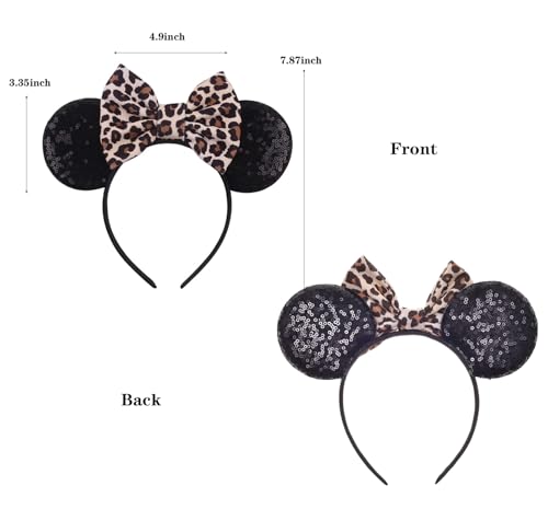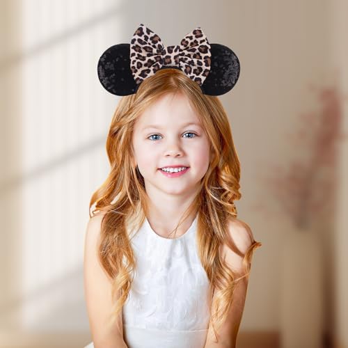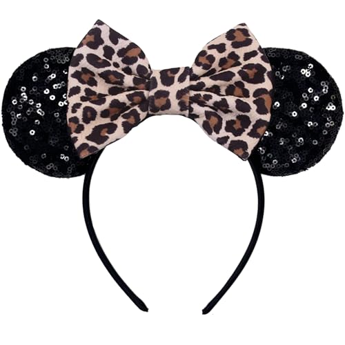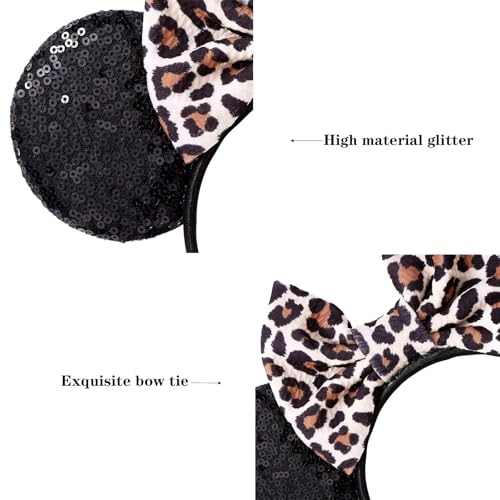 Mouse Ears Headbands - Cute Sequin Mouse Ears for Women Girls and Boys, for Cartoon Princess Costume Cosplay Decoration Party (Leopard Print)