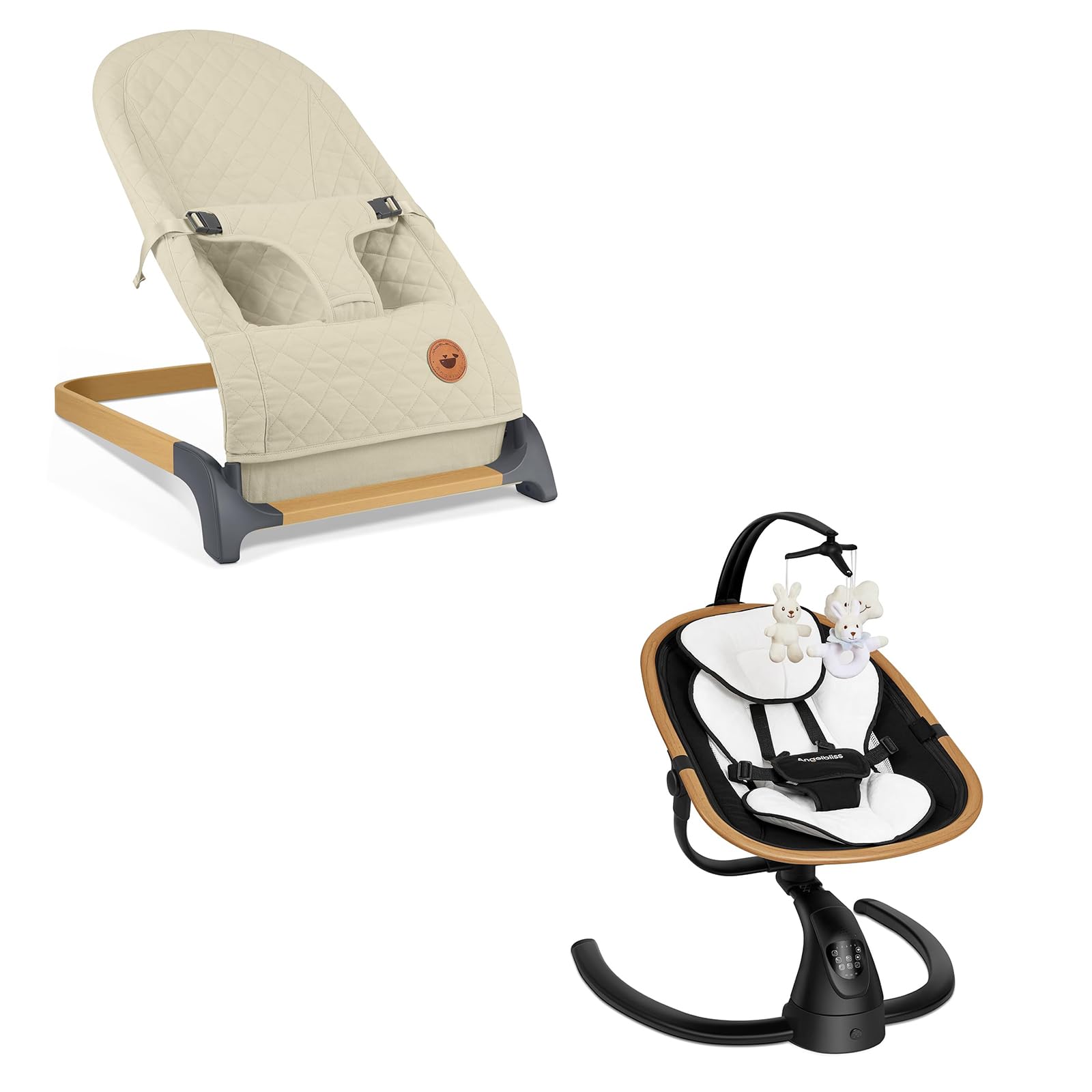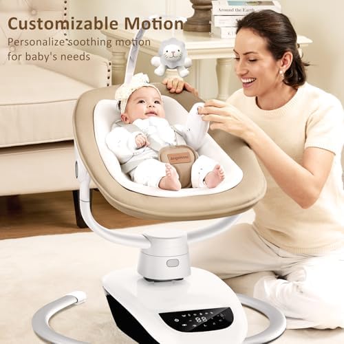 Angelbliss Baby Swing with Custom Motion, 3D-Motion Electric Swing with 6 Unique Motions & 4-Speeds, Bluetooth Enabled, 13 Preset Lullabies (Beige)