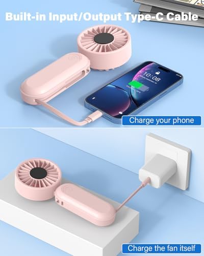 - 【17H Long Lasting】- 4500mAh large rechargeable battery offers 3-17 hours of cooling time. The pioneering built-in Type-C cable design has both input and output functions, allowing you to charge your phone and recharge the fan. The led dispaly shows the speed and remaining battery life. Perfect for long outdoor activities, camping, concerts, ball games, fishing, picnic, running, outdoor wedding, and power outage
