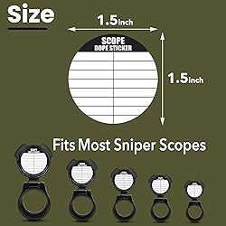 - Take your precision shooting to the next level with the 12 Pack Scope DOPE Sticker for Long-Range Shooting by Value Plus. Designed for serious marksmen, these high-quality stickers are built for reliability and performance. Whether you're into long-range shooting, air gunning, hunting, or target practice, these stickers help you stay dialed in with quick, at-a-glance reference points. Each sticker is 1.5 inches in diameter, fitting most rifle scope caps with ease. The matte finish ensures clear visibility and is best marked with an extra fine point marker for long-lasting, smudge-free data. These scope cap stickers are perfect for tracking your projectile drop recorder information, allowing you to make precise adjustments with confidence. Proudly made and designed in the USA, these scope turret stickers deliver durability and reliability, no matter the conditions. The strong adhesive ensures they stay in place, even in rugged environments. With 16 writable blank spaces you can input your own range and drop info. Essential data at your fingertips for shooters who demand precision. These stickers make a great addition to your long-range shooting accessories for rifles and essential gear. Use them alongside your range finder card, dope card, and dope book to refine your skills and enhance your shooting accuracy. Whether you're at the range or in the field, these turret tags provide an indispensable advantage for any shooter. Get your pack today and experience the difference in precision shooting!