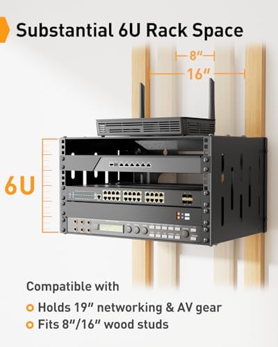 - Complete Package for Easy Installation: The package includes 1x 6U computer server rack, 38 x M6 bolts, 24 x M6 cage nuts, 4 x ST large screws and 4 x wall anchors. It can be installed on 8″ or 16″ wood studs (without anchors), as well as on concrete walls (with anchors). Do not mount it on drywall alone.