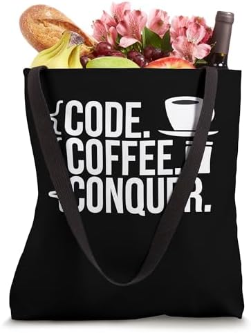 Code Coffee Conquer Developer Slogan Tote Bag