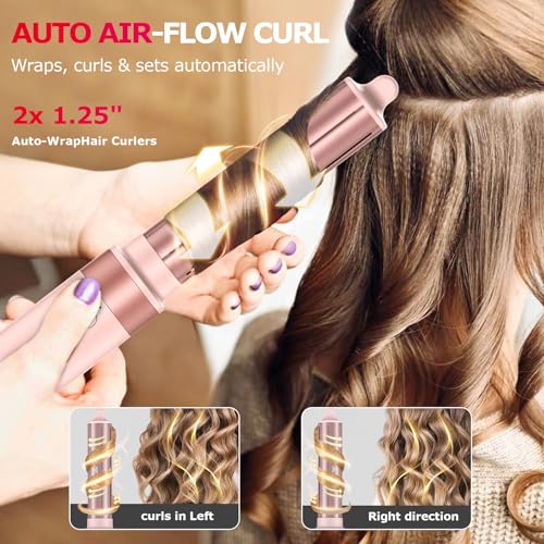 - Effortless Curls with Auto-Wrap Technology - Two 1.25" auto-wrap curlers use airflow to gently wrap and style your hair without clips or burns. Create bouncy curls in both directions—easy for beginners and safe for daily use.