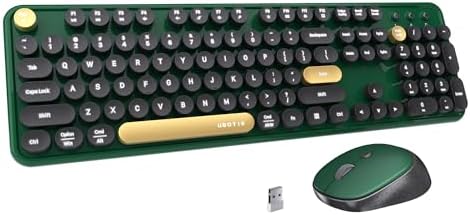 x UBOTIE Colorful Wireless Keyboard and Mouse, Full-Sized Office Keyboard with Typewriter Flexible Keys, 2.4GHz Dropout-Free Connection, Wrist Rest, Optical Mouse for PC Laptop(Black Green)